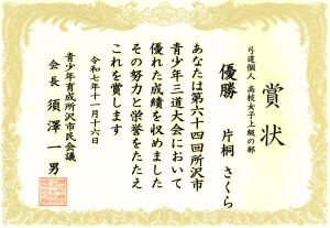 女子個人 2位(県内77校の各校代表6名 約450名中)