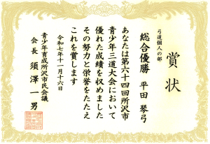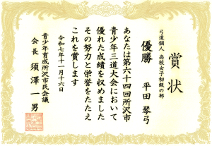 4月下旬に弓道をはじめ、5月ゴールデンウィークに的前に立った1年生のメンバーのみの編成チームで、団体・個人入賞することができました。